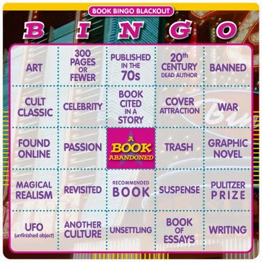 Check it out! It's a new bookish Bingo card from Unruly Reader. You can pick one row of squares and read for bingo, or fill all 25 squares and go for blackout. It's a fun and different way to track what you read, and it just might expand your reading horizons, too. The Unruly Reader gives explanations and suggestions for each category on her blog, as well as a printable version of the card. I love reading bingo. It's one of my favorite bookish things. And I'm excited about most of the categories on this Bingo card, although a few of them worry me a little. Like the Book of Essays and a Cult Classic. Those will be a challenge for me, but I'm still going for blackout.